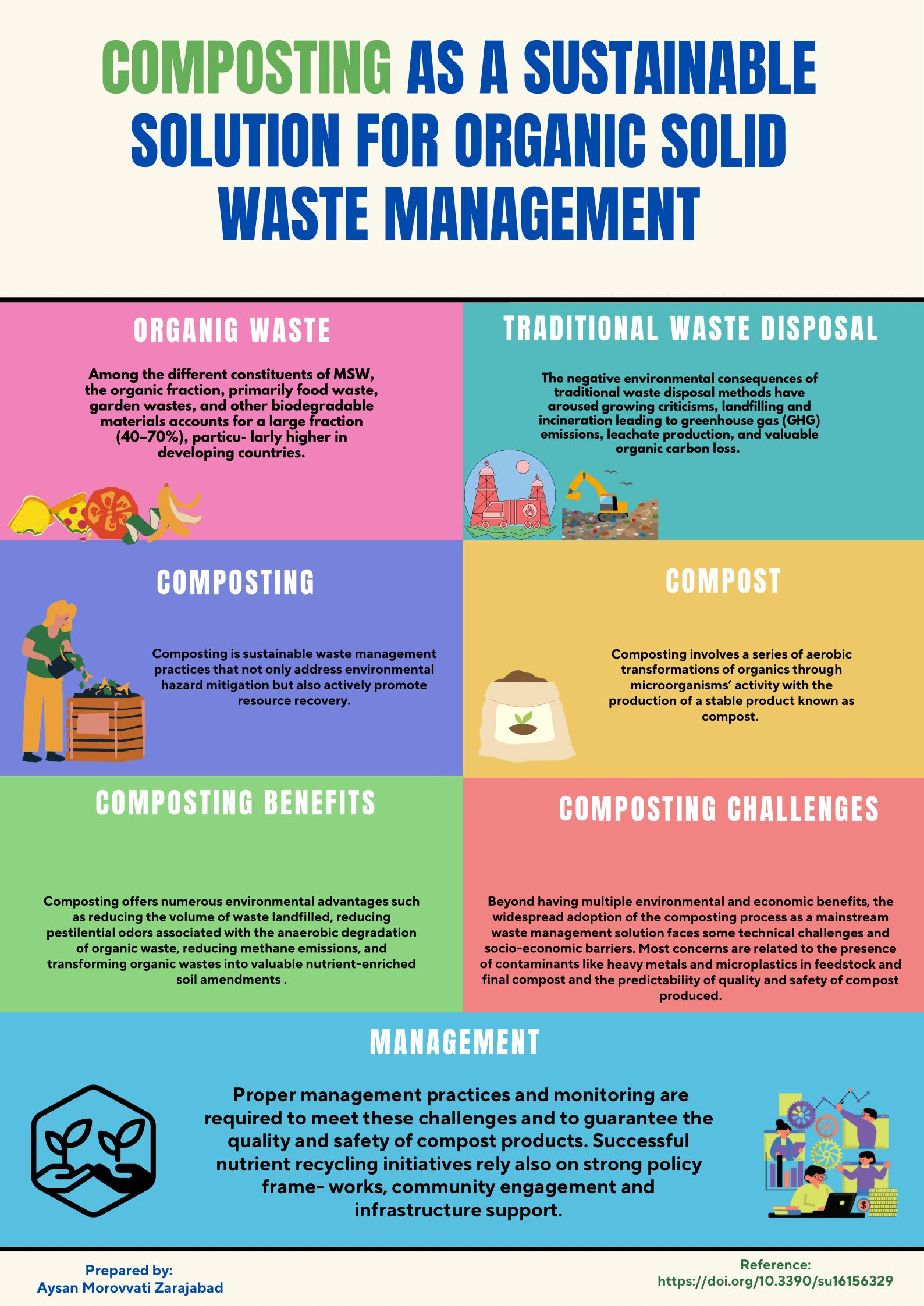 Traditional waste disposal methods, such as landfilling and incineration, contribute to environmental issues like greenhouse gas emissions, leachate production, and loss of valuable organic carbon. Since organic waste accounts for 40–70% of municipal solid waste, especially in developing countries, sustainable alternatives are needed. Composting presents an environmentally friendly solution by reducing methane emissions, minimizing landfill waste, and converting organic matter into nutrient-rich soil amendments. However, its widespread adoption faces challenges, including contamination from heavy metals and microplastics, as well as concerns over the quality and safety of the final compost product.