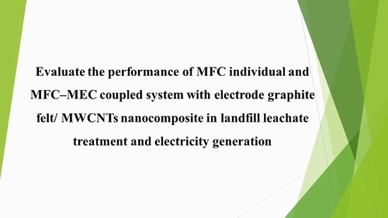 انگلیسی مرکز تحقیقات مواد زائد جامد | Evaluate the performance of MFC individual and MFC MEC coupled system with electrode graphite felt MWCNTs nanocomposite in landfill leachate treatment and electricity generation